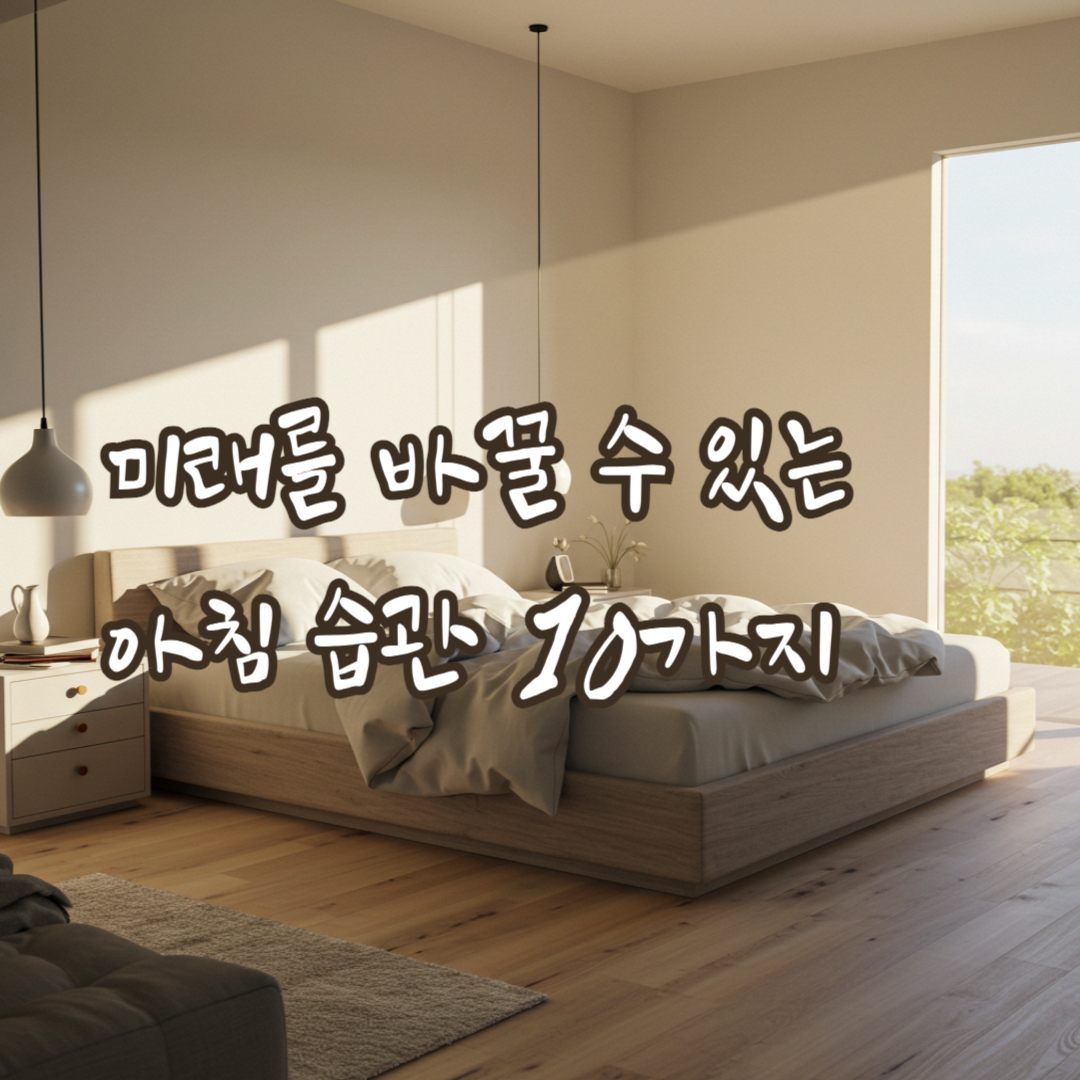 핵심 요약 · 아침은 반응 모드가 아닌 주도 모드로 시작하기.① 휴대폰 대신 알람시계② 침대 정리③ 아침 햇빛④ 물 한 컵⑤ 5분 움직이기⑥ 오늘의 3가지⑦ 2분 정적⑧ 한 쪽 독서⑨ 가짜 업무 금지⑩ 어제의 성과 기록시작 팁 · 한 번에 다 하지 말고 2가지부터, 매주 1개씩 추가!저는 사실 아침형 인간과는 거리가 먼 사람이에요. 알람을 세 번씩 끄고, 눈뜨자마자 휴대폰부터 확인하다 보면 하루가 이미 어수선하게 시작되곤 하죠. 늘 “조금 더 주도적으로 살고 싶다”는 생각은 했지만, 막상 행동으로 옮기기는 쉽지 않았습니다.그러다 요즘 많이 회자되는 아침 습관 이야기에 자연스럽게 관심이 갔습니다. 단순히 부지런해 보이기 위함이 아니라, 정말로 삶의 흐름을 바꾸고 싶어서요. 그래서 여러 자료를 찾아 ‘아침을..