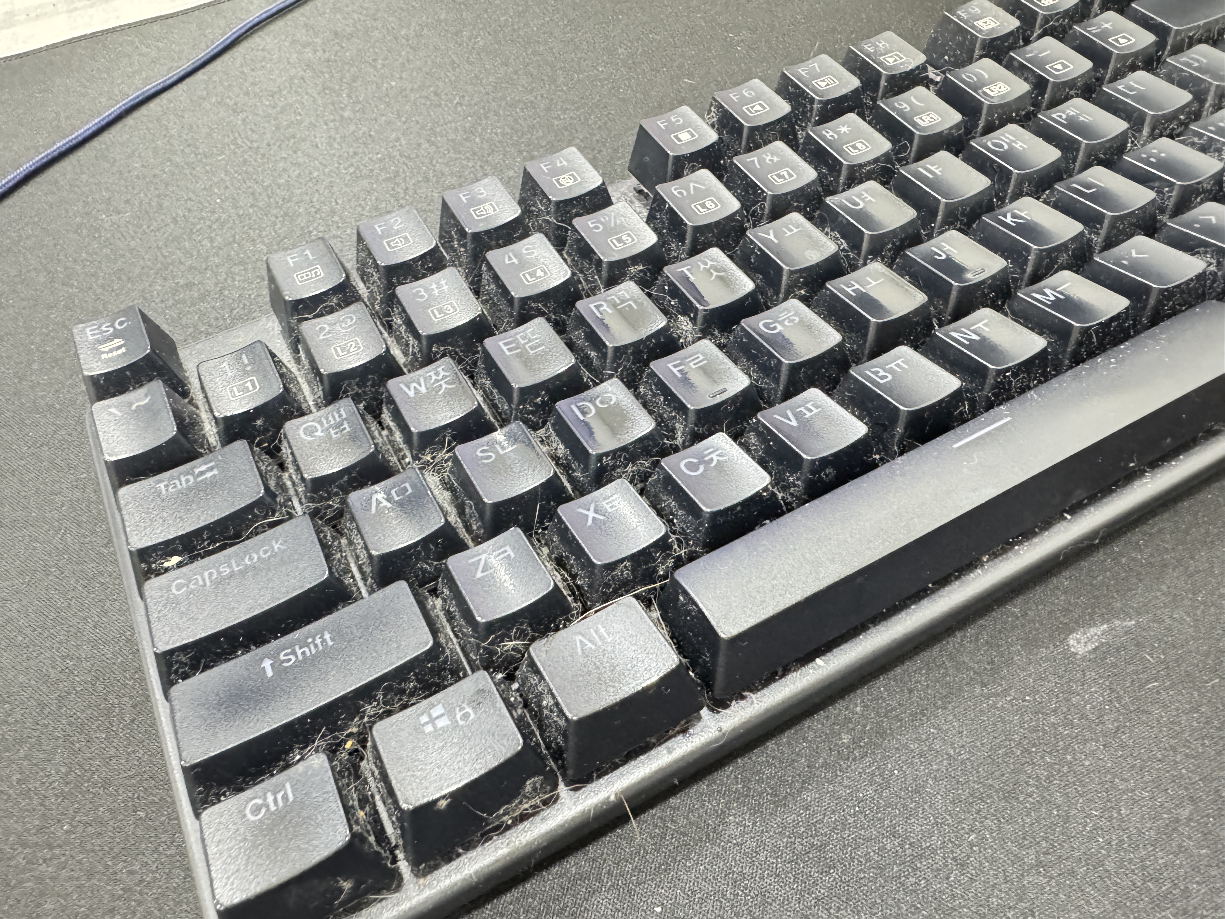 기계식 키보드는 키캡이 분리되니까요. 하나씩 떼어보는데, 그 안에 먼지며 과자 부스러기며…