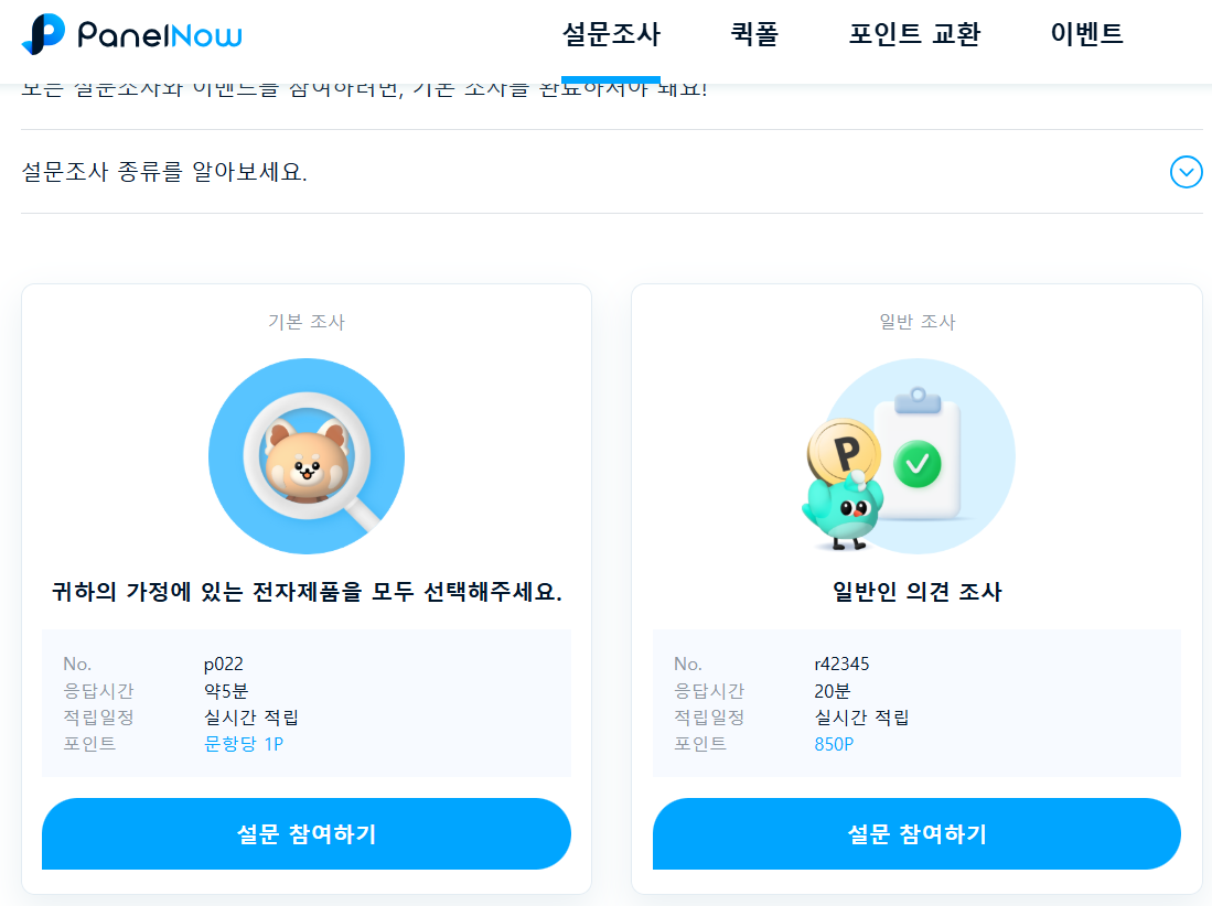 패널나우는 국내에서 가장 유명한 설문조사 사이트 중 하나예요.