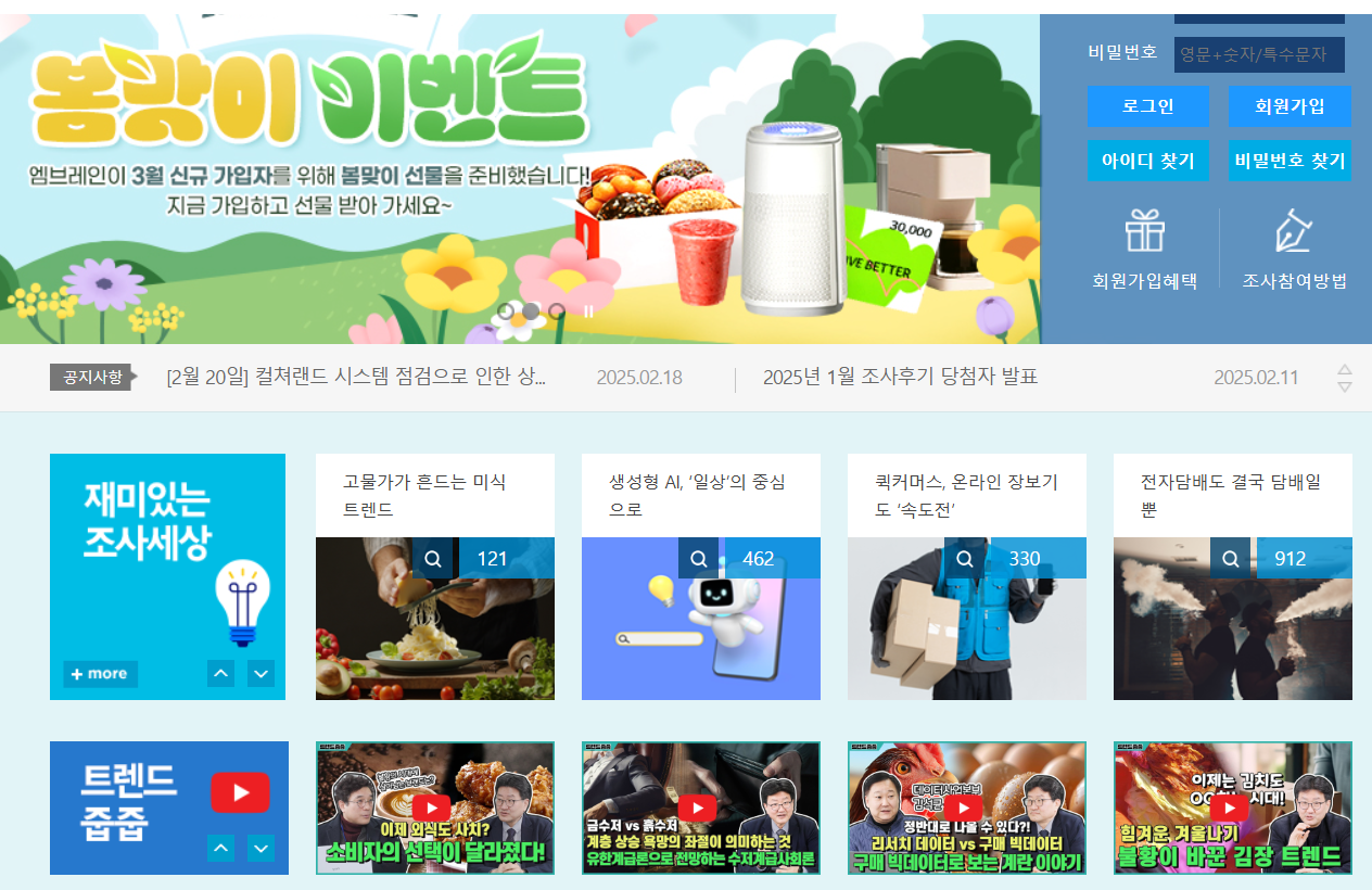 국내 대표적인 리서치 회사인 엠브레인이 운영하는 설문조사 사이트로, 신뢰성이 높아요.