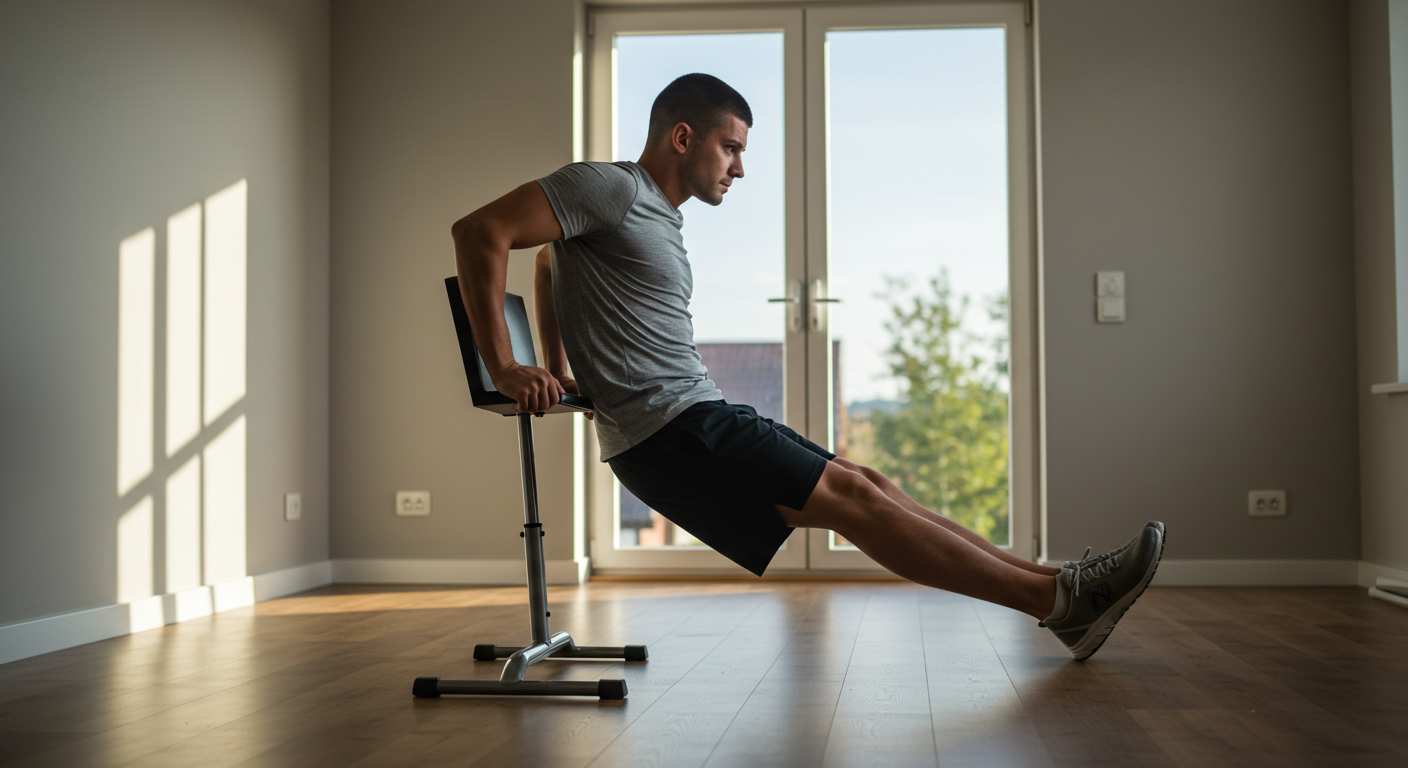 집에서 간단하게 할 수 있는 삼두 운동은 의자 딥스입니다.