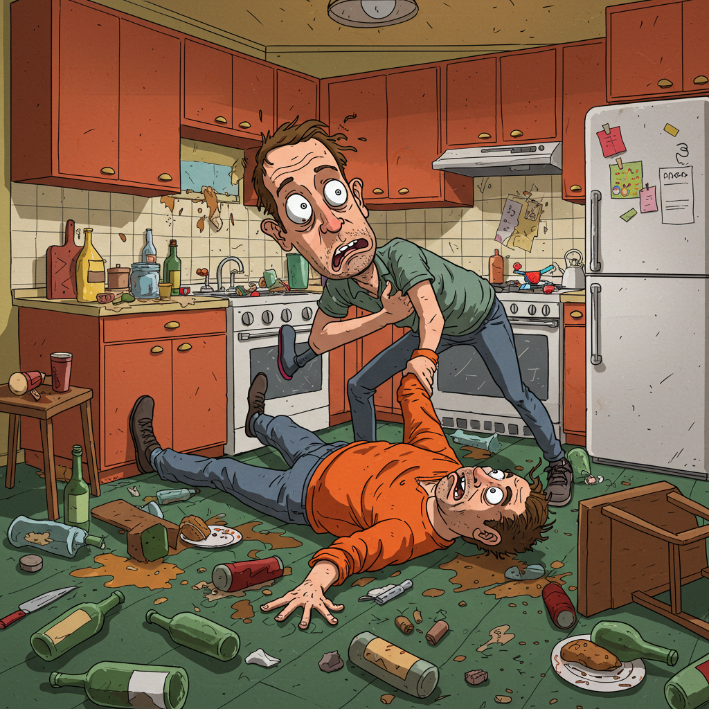 집들이 다음 날 아침, 부엌 바닥에 취객이 쓰러져 있었습니다.
