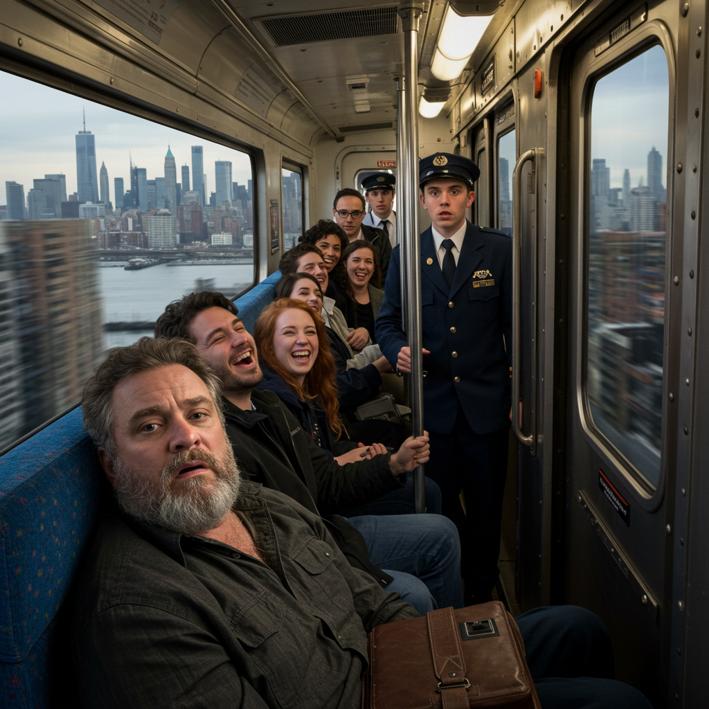 다른 승객이 중얼거리죠. “와, 저 사람 화났네.”