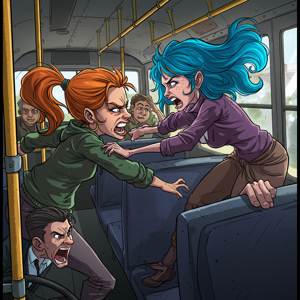 버스에서 마지막 좌석을 두고 두 여인이 싸우고 있었습니다. 운전기사가 외칩니다.