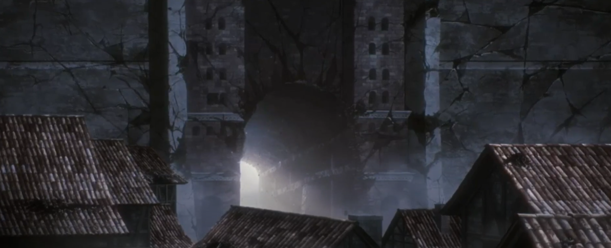 지난화 마지막에 에렌이 거인으로 변신해서 포탄을 막아내는 장면이 등장했지.