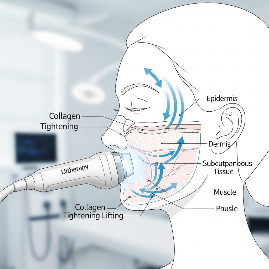 울쎄라는 집속 초음파(HIFU)로 진피·SMAS층에 열을 전달해 콜라겐을 재생시키는 비수술 리프팅이에요.