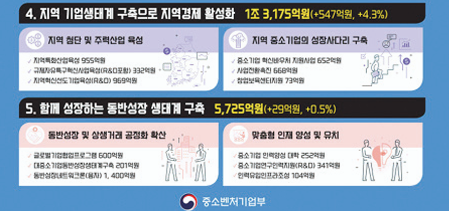 중기부는 예산을 5대 중점 투자 분야에 집중합니다.